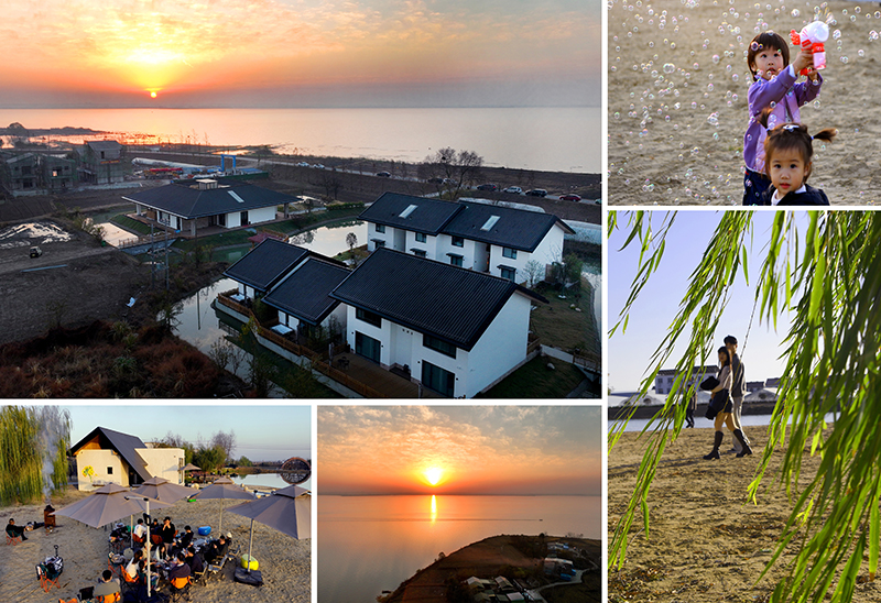 霍邱县新店镇黄泊渡村依托淮河古渡口和城东湖的资源优势,建成少间·烟泊渡乡野民宿,设有和谐乡风展示中心、水岸咖啡、游玩沙滩、卡丁车场地、户外草坪、咖啡吧、风景泳池、垂钓台等多个活动区。