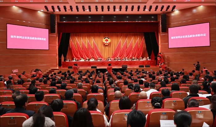 市县领导霍绍斌、沈勇、李跃、曹良喜、王晖、贾国全、陈力、冯家勇、徐丽、杨军章和县政协秘书长赵勇在主席台前排就座。会议通过了提案审查委员会关于本次大会提案审查情况的报告,审议通过本次大会决议,并进行了书面表彰。
